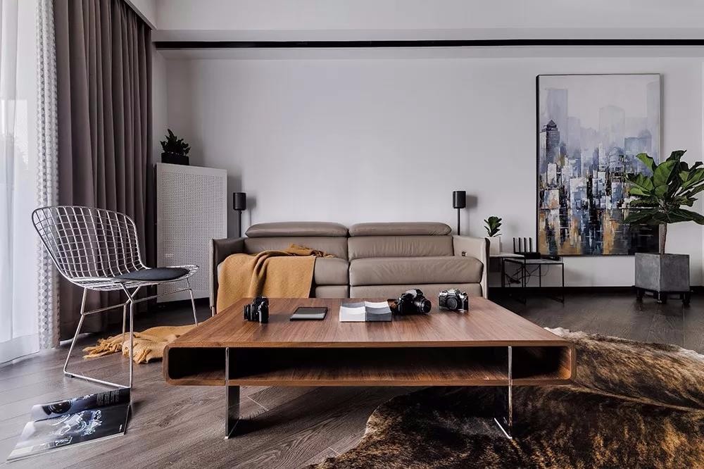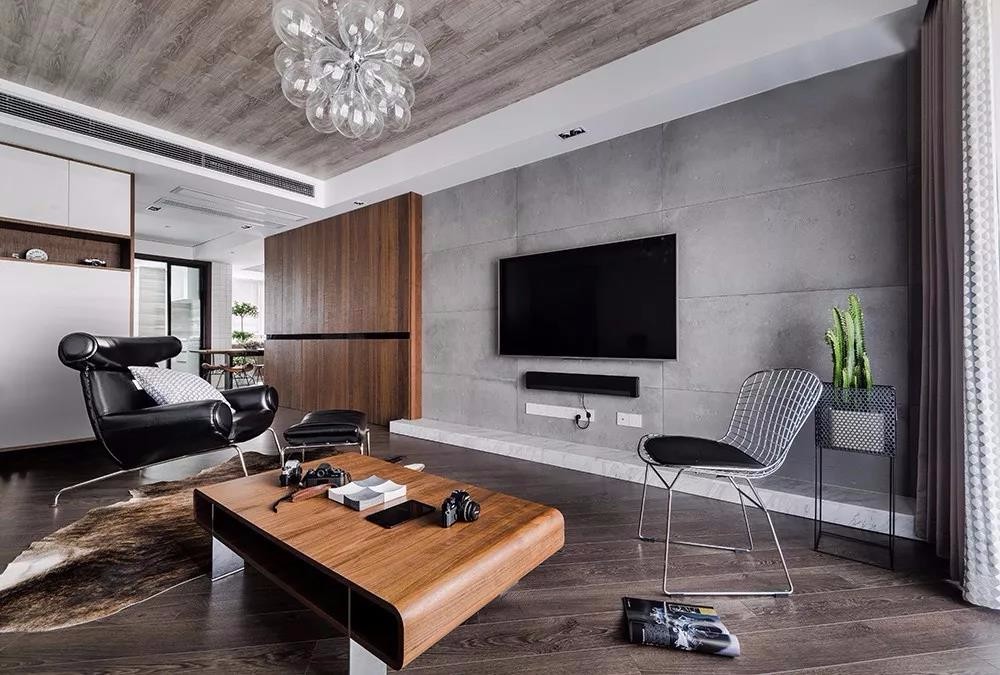 客廳,深色地板和水泥墻,突出了工業(yè)風的元素。水泥墻電視背景給生活帶來真實感,簡簡單單、不加修飾,實則蘊藏著與生俱來的原始美感。