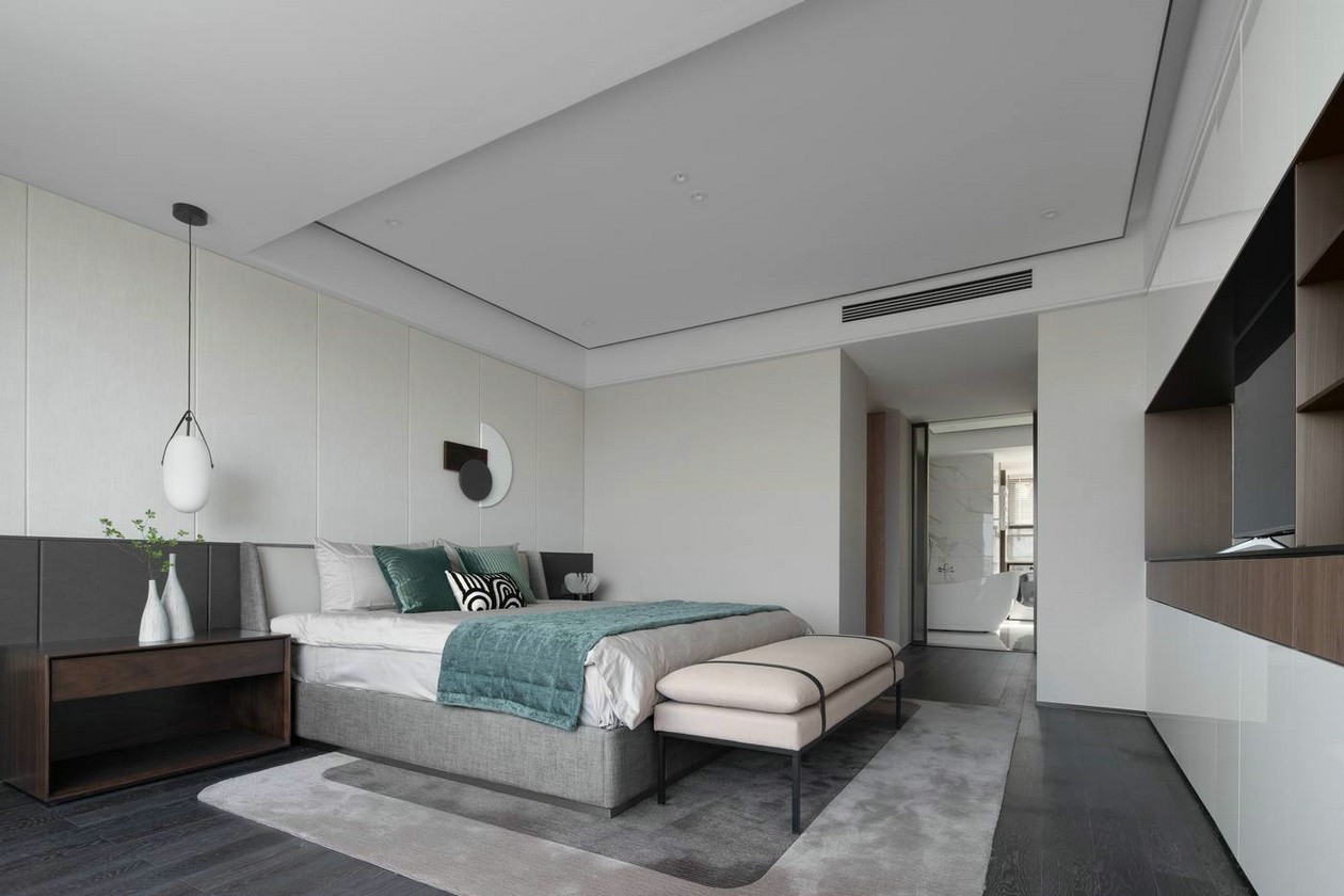 客廳茶室一體結合的做法,使空間體量有所增加,開闊的空間體驗也在無形中影響著業主的生活模式。